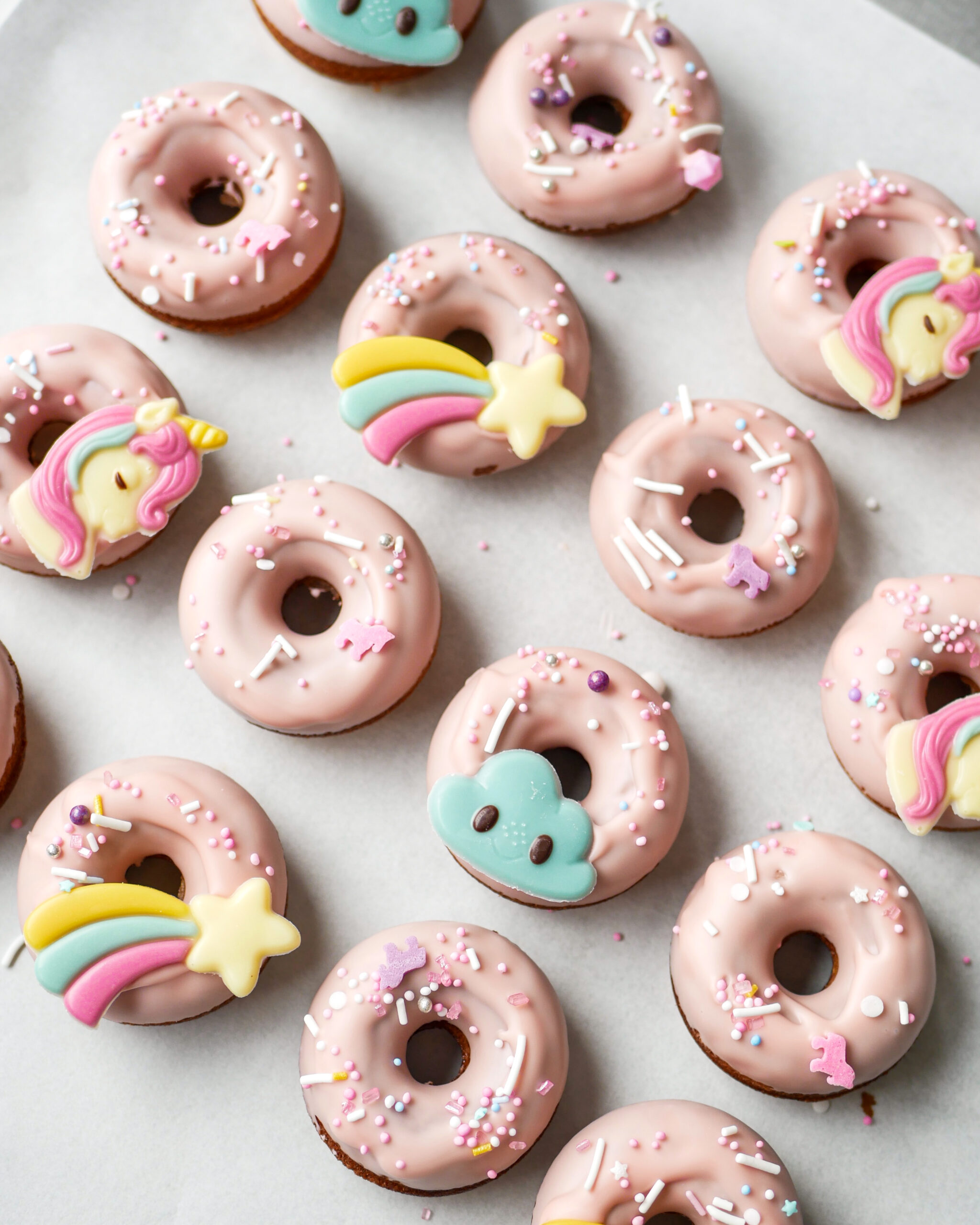 NOUVEAU – Choisissez un thème ! Dino, tropical, chien, sirène, licorne, espace, glace ou savane : nous ajoutons 8 petites décorations en sucre (sur la moitié des donuts) ainsi que des sprinkles assortis (sur tous les donuts). Voir photos. Supplément : 3,50€